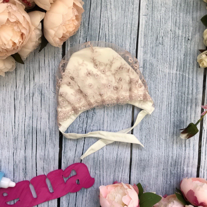 Теги: Купить детские чепчики оптом от производителя. 184. Чепчик с кружевом, хлопок 100 % интерлок цена,отзывы официальный сайт "Стеша Феодосия"